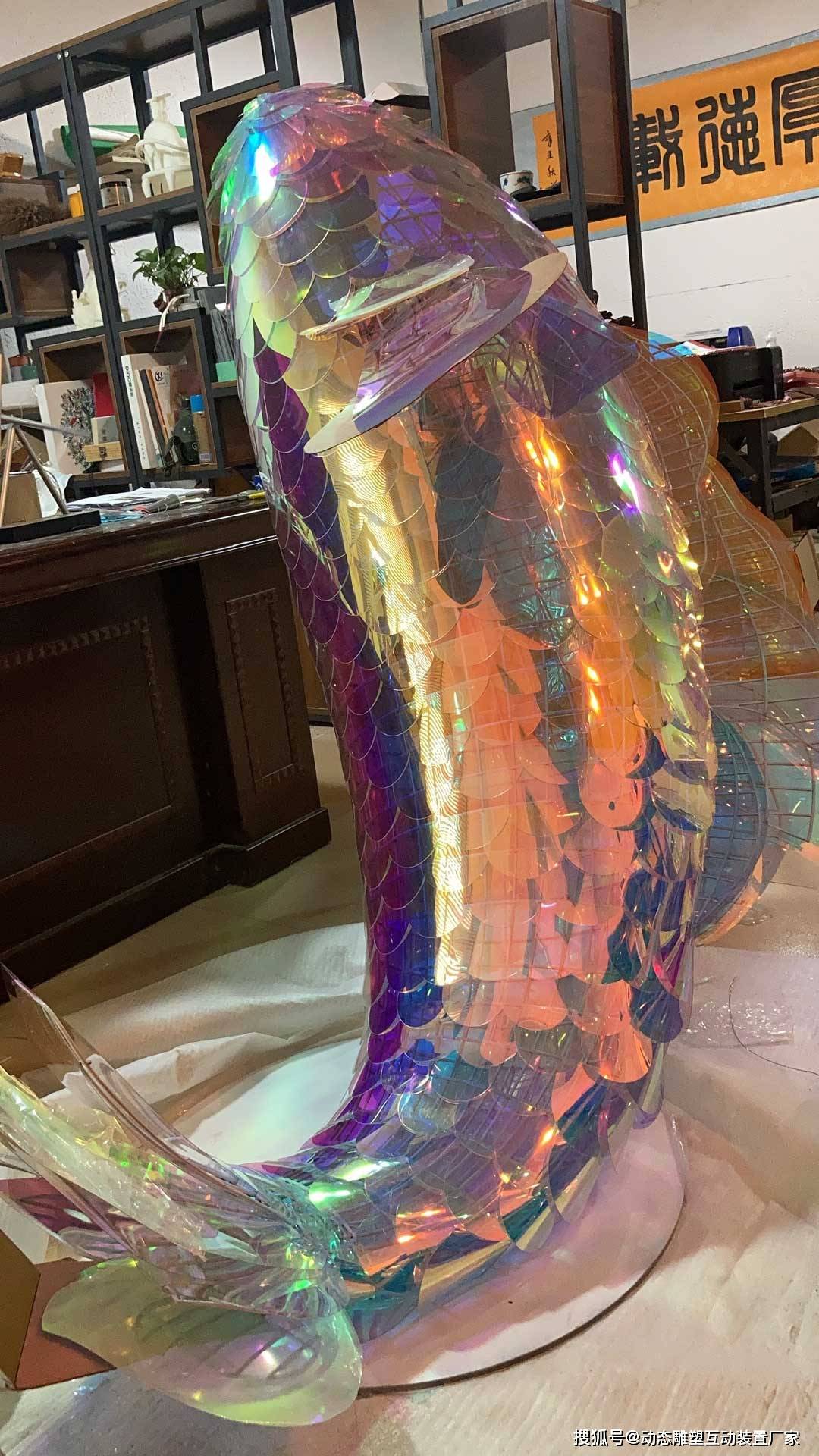 互动装置可以通过传感器和控制系统与玻璃钢雕塑结合,使观众的动作影响作品的光影变化或内容展示。