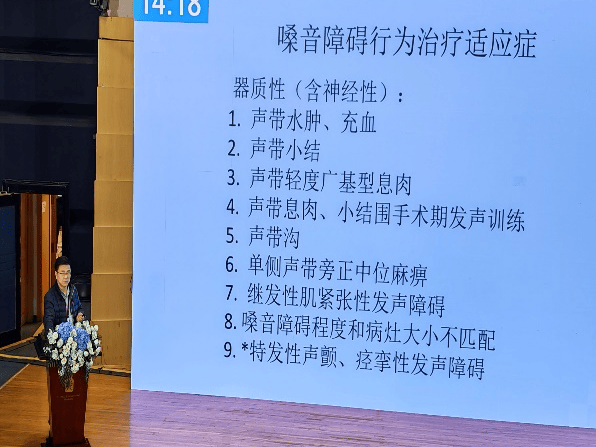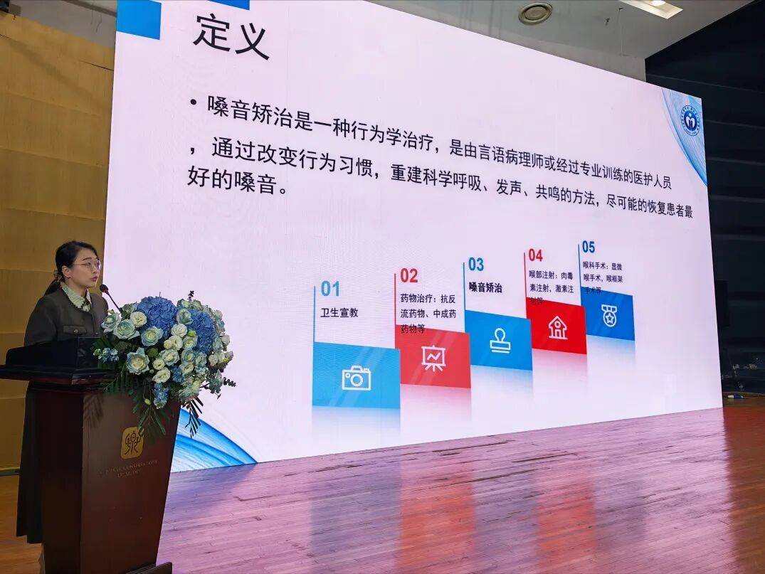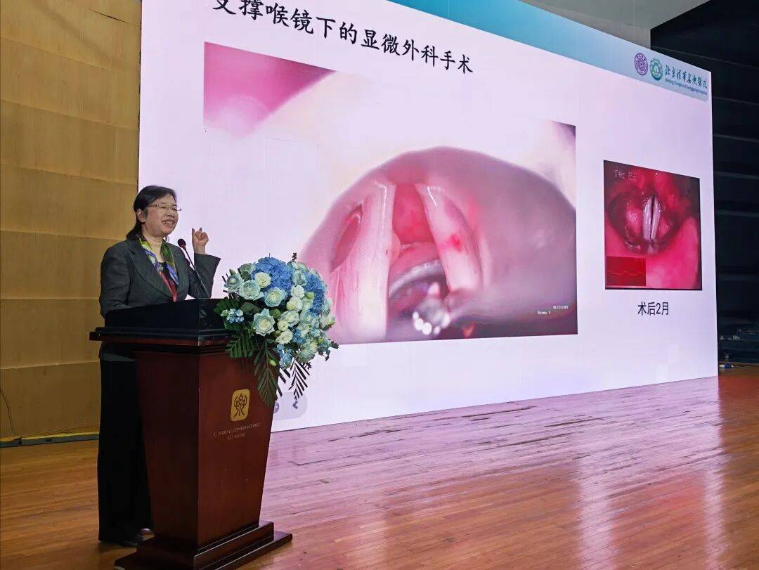 北京清华长庚医院叶京英主任医师用深入浅出的语言分享了《职业用嗓者嗓音疾病的医疗干预和康复》,她展示了常见声带病变如小结、息肉、囊肿以及痉挛性发声障碍的临床诊疗方案与手术案例,从病因分析到治疗干预,再到康复训练,提出了一整套科学规范的诊疗流程;解放军总医院黄冬雁主任医师针对《AI在嗓音医学领域的应用》进行了分享,她系统介绍了人工智能在嗓音医学中的应用情况,包括人工智能通过声学信号以及喉镜图像诊断病理性嗓音、声带疾病、喉癌的新进展;厦门大学附属中山医院庄佩耘主任医师针对《嗓音疾病的鉴别诊断》进行了分享,她提供了一些特殊的全身性疾病所导致的嗓音疾病的宝贵案例,以及这些特殊疾病的鉴别标准与诊疗方案;河南省中医药大学第一附属医院梅祥胜主任医师和广东省中医院李华副主任医师,则分别展示了中草药、针灸、推拿等中医疗法在嗓音调理和功能恢复中的独特价值,丰富了嗓音临床治疗的方法和手段;湖南艺术嗓音研究室张勇军主任用幽默风趣的口吻,分享了职业用声人群的一些嗓音急症处理经验。以上这些医学专题的分享呈现了嗓音医学领域“中西融合、科技赋能”的发展态势,这些研究成果标志着我国嗓音医学已从单一治疗迈向预防、诊断、治疗、康复等全流程的精准化管理,为职业用嗓者提供了更加全面、高效的健康解决方案。