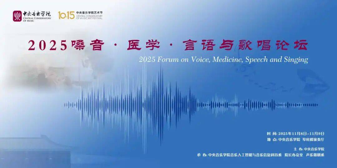 秋光正好,学术满堂,2025年11月8日至9日,作为我校“10·15艺术节”的核心学术活动之一,由我校主办,音乐人工智能与音乐信息科技系、院长办公室、声乐歌剧系共同承办的“2025嗓音、医学、言语与歌唱论坛(VMSS)”在琴房楼演奏厅隆重举行。来自声乐教学、播音主持、嗓音临床、艺术嗓音、言语治疗、人工智能及生物工程等多领域的知名专家和学者汇聚一堂,展开了为期一天半的深度跨界分享,共谱一曲跨界融合的学术交响。