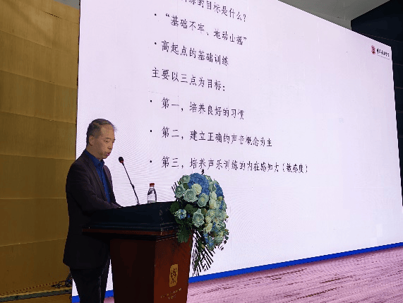 中国音乐家协会副主席、中国音乐学院雷佳教授以歌者和教师的双重身份在致辞中讲到:无论是舞台上的歌者还是教学相长中的教师,嗓音是艺术生命的全部,聚光灯下的每一个高音,每一次情感的完美诠释,其背后都离不开科学、健康的发声方法作为支撑;作为声乐教师,不能再仅仅依赖于找感觉、凭经验,而是要将科学的发声机理、嗓音保健知识、言语咬字的规律,系统化、精准地融入到教学中。科学的认知是赋予艺术翅膀的清风,而非束缚灵感的枷锁。她认为,此次论坛如同为声乐艺术的发展安上了“双引擎”,必将推动中国声乐教育事业向着更科学、规范、高效的方向挺进。