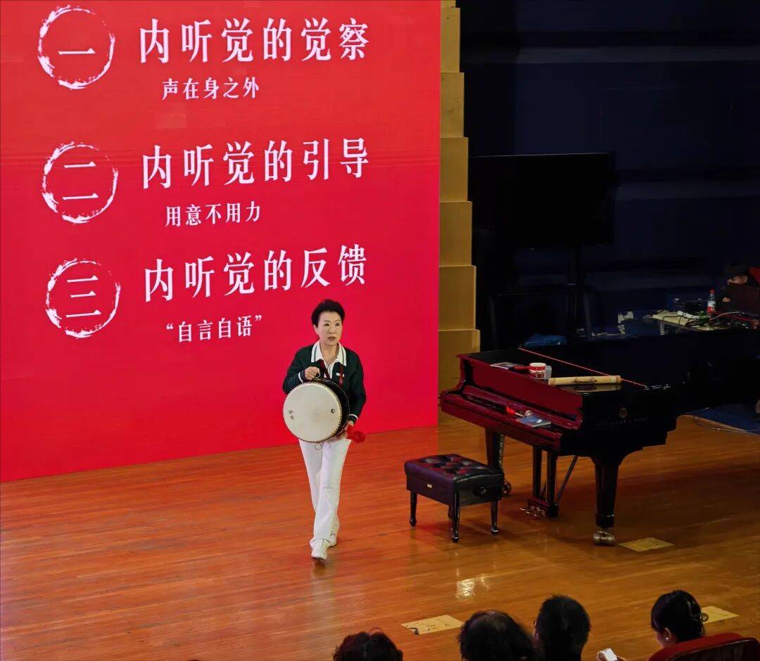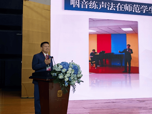 我校校友、福建师范大学林立君教授带来了《美化嗓音 轻松讲课》的专题演讲,她提出“以声悦心、以听导声、以简驭繁”的教学理念,深入剖析了优美嗓音的核心特质,并强调通过建立“内耳听觉”感知通道来科学引导发声。她现场演示了“击鼓共鸣”“甩绸控字”“以动辅唱”等一系列简单、易行的训练方法,将复杂的声乐原理转化为通俗易懂的教学实践,旨在帮助广大师生科学用嗓、美化声音、轻松授课。我校校友、西安音乐学院屈歌副教授带来了《我国戏曲声乐跨学科研究及发展现状》,揭示了科技赋能戏曲声乐的革新路径。他运用声学分析将秦腔等剧种的独特韵味转化为可视化数据,使传统“口传心授”的经验得以科学解构。通过喉镜检测和嗓音矫治技术,为演员提供个性化训练方案,有效解决了倒仓期保护、高音训练等长期难题,为戏曲声乐的传承与发展开辟了科学化、精准化的新维度。