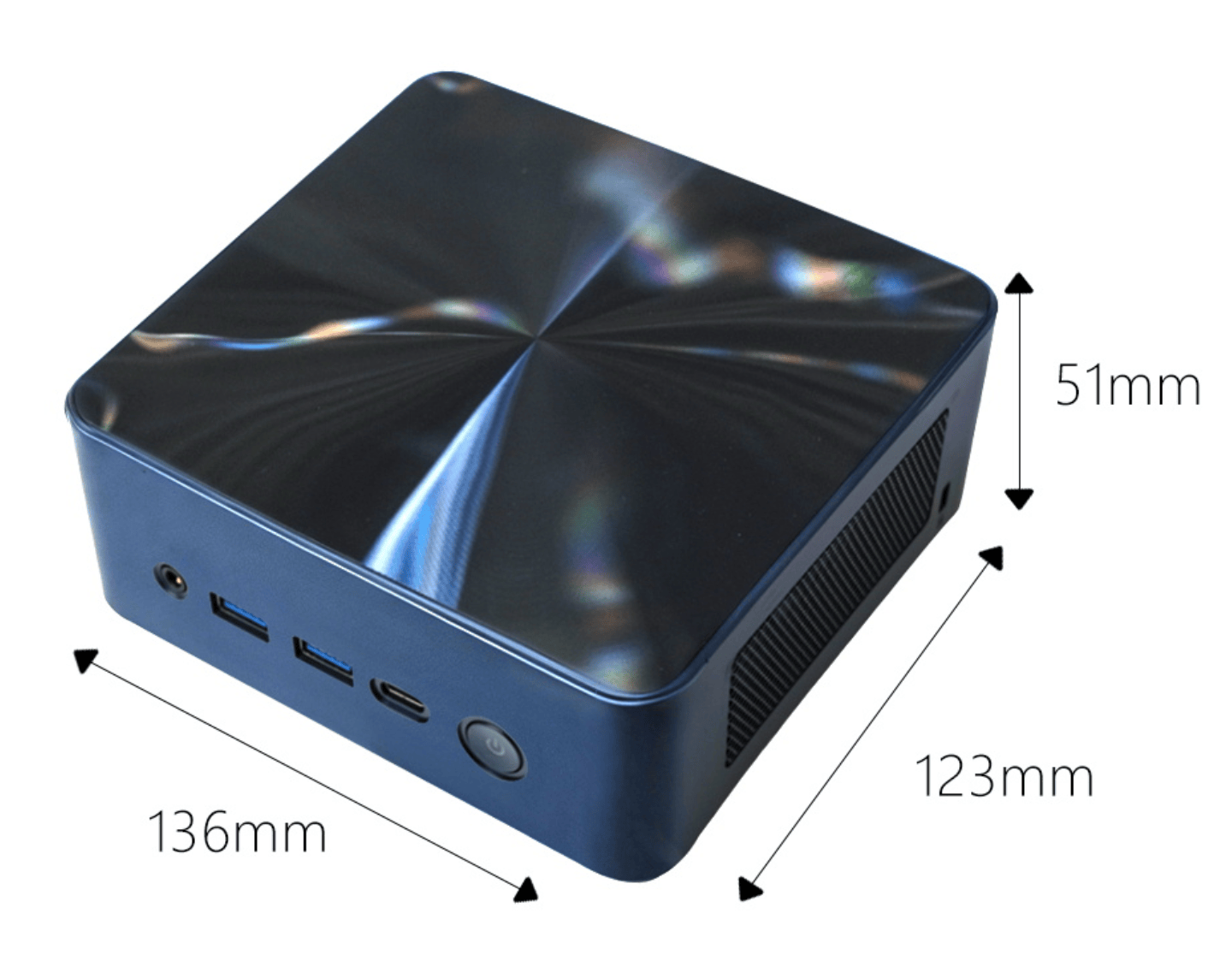BRE N7P采用NUC风格设计,三围尺寸为136×123×51mm,可轻松塞进背包或桌面角落。机身采用金属中框搭配镜面CD纹理塑料顶盖,在保证散热效率的同时,通过反光效果增添了一丝科技感。