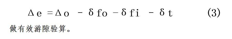 有效游隙Δe:轴承在实际运转时的游隙。由于轴承在实际工作时受温升和散热条件的影响,一般是内圈温度高于外圈温度,导致游隙减少。因此: