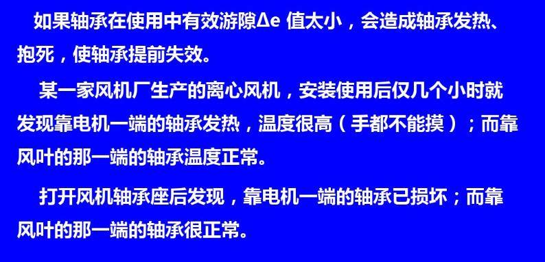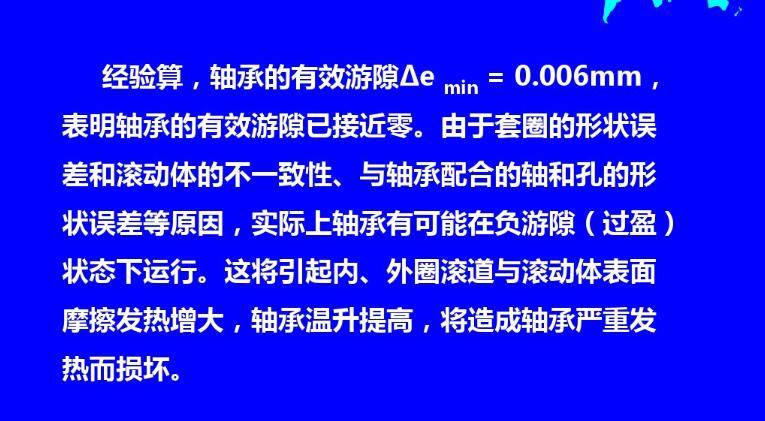 游隙过小,可能会在实际运行中出现负游隙(过盈),引起摩擦发热增大,温升提高,进而使有效游隙更小或过盈更大,如此恶性循环将导致轴承抱死。