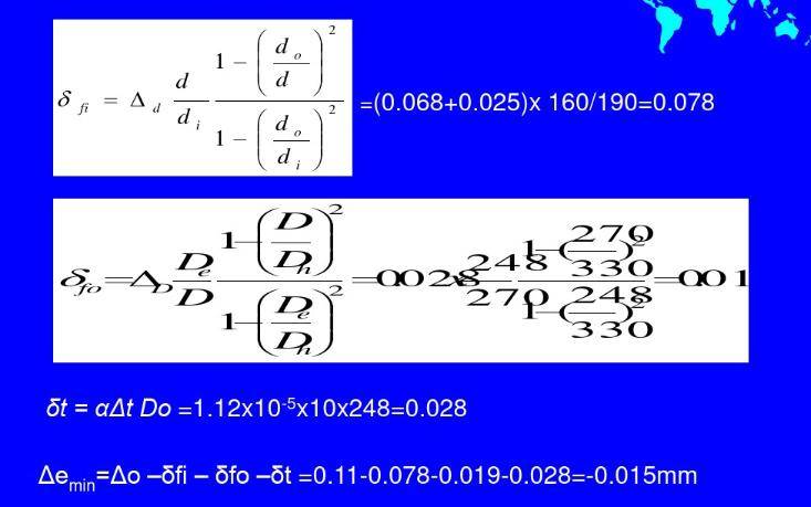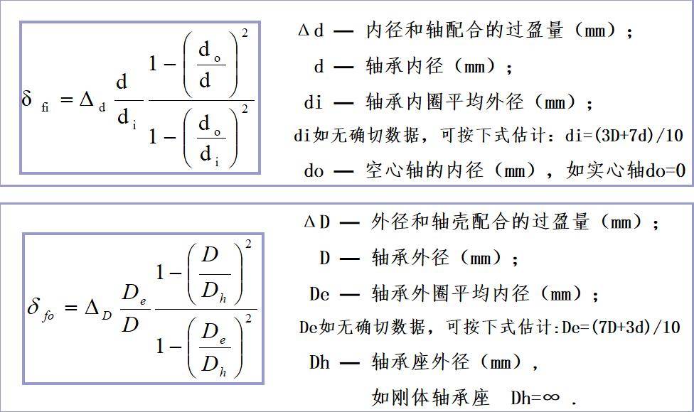 展开全文式中,δfi 为内圈和轴配合引起的游隙减少量; δfo 为外圈和轴壳配合引起的游隙减少量。