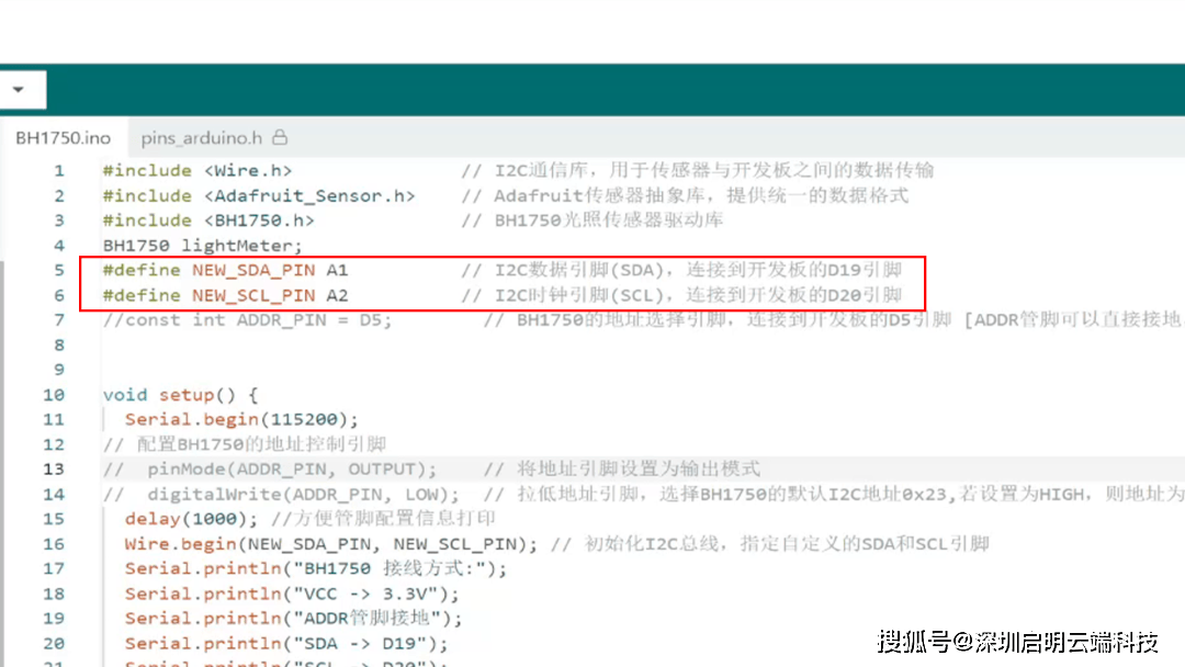 - 开发板的 D19 (SDA) 连接至传感器的 SDA