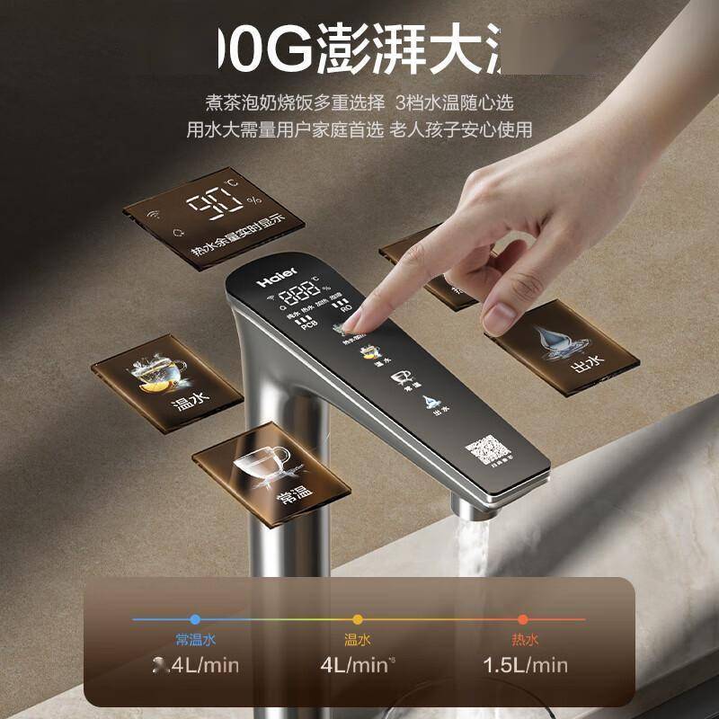 传统解决方案往往顾此失彼:净水器解决了水质却无法即热,即热饮水机依赖预存水存在卫生死角,而普通管线机又受限于安装条件。这种割裂的体验直到海尔「麦浪套系」净热一体机的出现才被彻底打破——它将1600G大通量净水、精准温控加热、鲜活水循环三大核心功能浓缩在厨下35cm的紧凑空间内,像一位隐形的"水管家"默默重构家庭饮水动线。