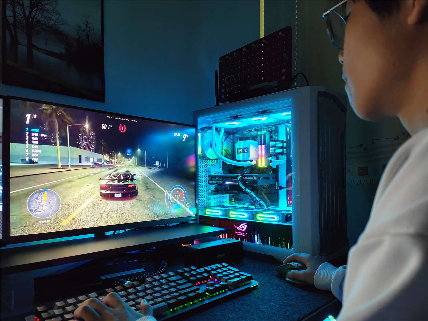 在游戏时,墙面可以呈现璀璨的光影,与机箱的光互相交互,增添了电竞氛围感,特别带劲。