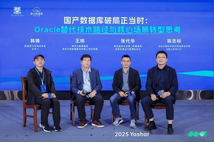 近日,YashanDB 数据库城市行南京站在江苏国际数据港召开,期间聚焦 “国产数据库破局正当时:Oracle 替代技术路径与核心场景转型思考”的主题,举办了一场圆桌会议。本次圆桌会议由数据库行业资深专家韩锋主持,南京大数据集团南京可信数据服务有限公司总经理王炜、南京医科大学第二附属医院信息化建设与管理处处长张代华、深圳计算科学研究院 CTO & 崖山科技 CEO 陈志标出席,围绕政务与医疗领域 Oracle 替代痛点、对YashanDB 的未来期盼及生态建设等话题展开深度交流。