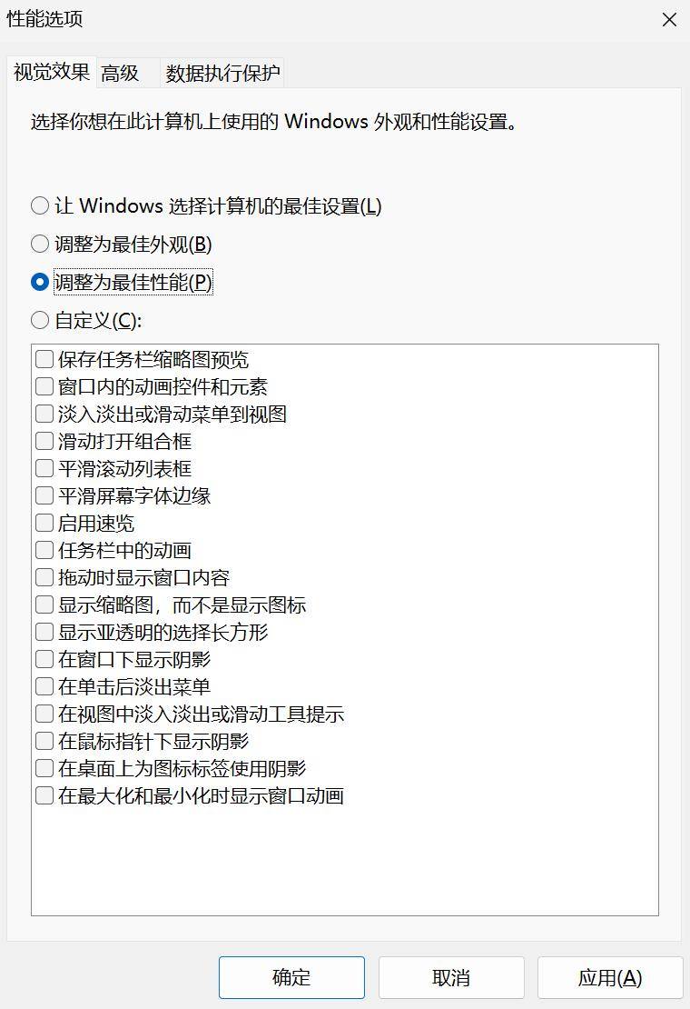 Windows 11/10 为了好看,加入了很多淡入淡出、阴影、透明窗口等动画效果,很吃显卡和内存资源。对于老旧电脑,关掉它们可以获得肉眼可见的流畅感。