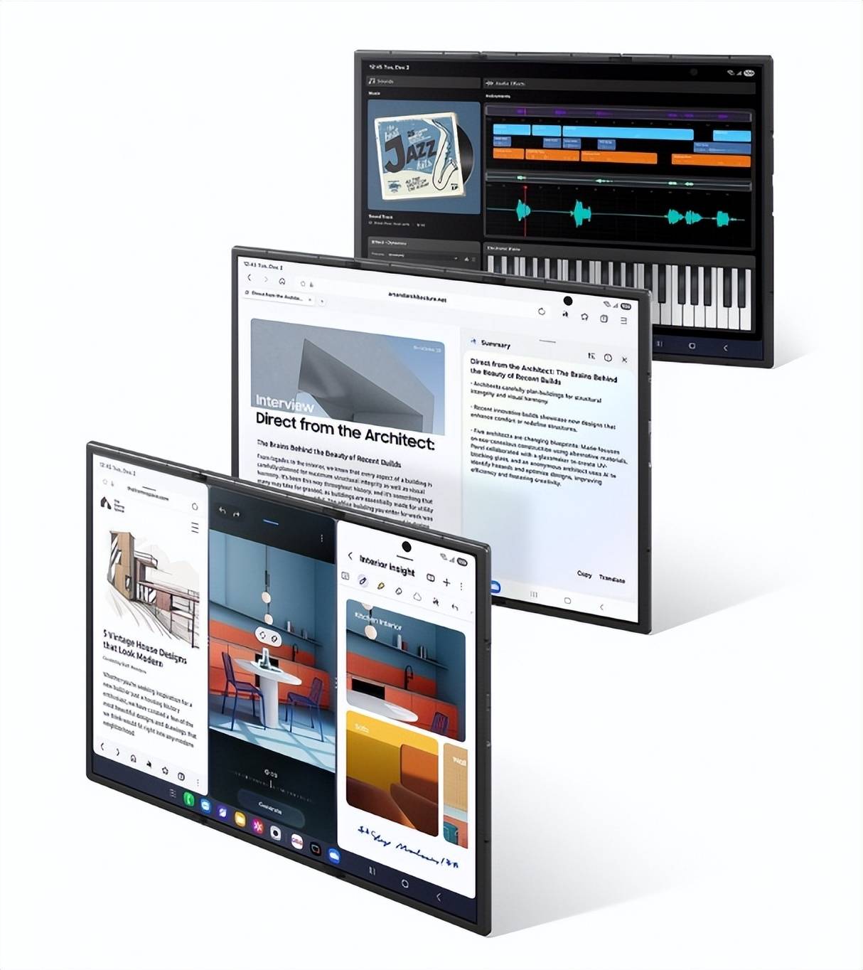 三星Galaxy Z TriFold配备一块超大内屏,面积相当于三台常规直板手机并排,为各类功能的施展提供了充足空间。在这块大屏上,用户能够同时开启三个互不干扰的竖屏应用,轻松实现多任务处理。例如,一边查阅资料,一边编辑文件,还能及时在社交软件上回复消息。若想以更沉浸的方式浏览网页或阅读文档,纵向握持三星Galaxy Z TriFold,屏幕可显示更多内容,带来不一样的阅读体验。