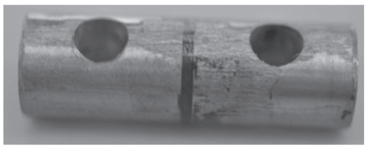 图1:改进型短梁剪切试样,CTD-425/S2玻璃复合材料试样中心置有薄铜片。
