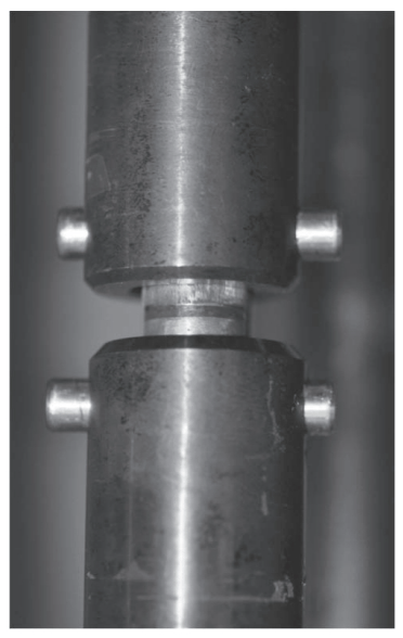图3:安装在拉伸加载夹具中的厚度方向层间拉伸试样。