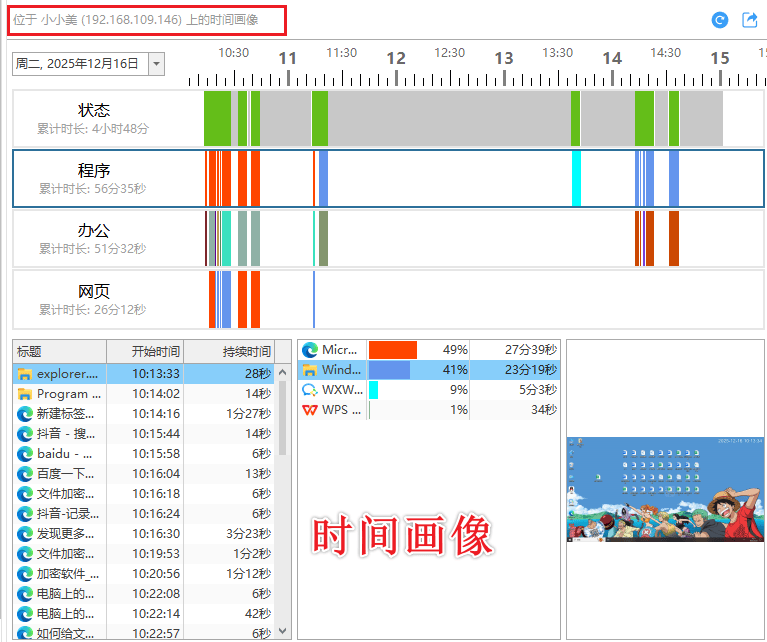 时间画像功能,就像给员工的工作时间画了张“地图”。它能详细记录员工在每个时间段内都做了什么,比如用了哪些软件、浏览了哪些网站、进行了哪些文件操作等。