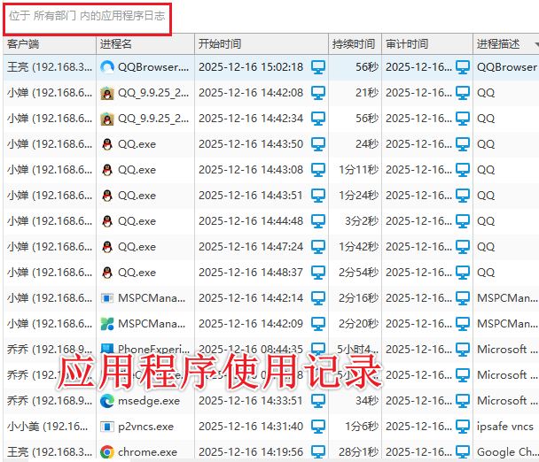 员工上班时都用了哪些软件?系统能详细记录下来。