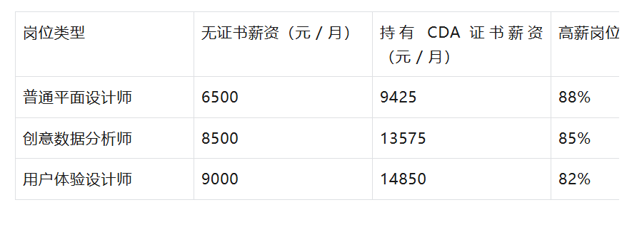 小结:CDA 是高职设计生 “薪资翻倍” 的必考证书,证书让你从 “纯创意执行者” 升级为 “数据 + 创意” 复合型人才,轻松对接互联网头部企业的核心设计岗,彻底摆脱 “低价内卷” 的职业困境。