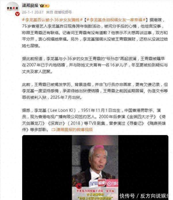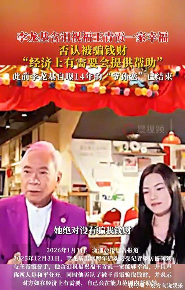 2026年元旦,75岁的香港艺人李龙基在媒体面前发表了一番话,给他那段轰动全港的爷孙恋画上了一个戏剧性的句号。在面对媒体的询问时,他坚决否认了关于自己被小36岁女友王青霞骗取财产的传闻,并含泪表示自己是在不知情的情况下,成为了第三者,如今双方已经和平分手。这场持续了数年的情感风波,最终以衷心祝福作为结局,但其中隐藏的背后信息却远比外界所看到的复杂。李龙基在跨年活动现场明确进行了辟谣,强调自己从未被王青霞骗取财产,网络上流传的赠送七层楼的说法完全不属实。他解释,早年确实曾承诺过将房产过户给女方,以保障她的生活,但相关的财产转移早已完成,且与此次的分手风波并无任何关系。这一澄清,直接回击了外界关于他人财两空的种种猜测。