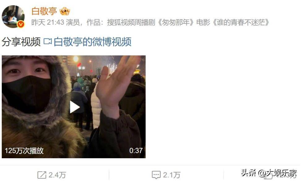章若楠在12月31日的湖南卫视跨年晚会上,与张凌赫牵手演唱情歌,成功登上微博热搜。然而,细心的网友发现,章若楠在跨年当天发布的一段视频中,背景音乐选用了歌曲《给未来的自己》。视频中的她身穿跨年演出时的礼服,朝镜头甜美微笑。更巧合的是,当晚她登台表演时,白敬亭也在微博发布了自己看烟火的视频,而背景音乐同样是《给未来的自己》。在视频中,白敬亭温柔地笑着看向镜头,和章若楠隔空展现了甜蜜的互动,这一幕迅速引发全网热议。