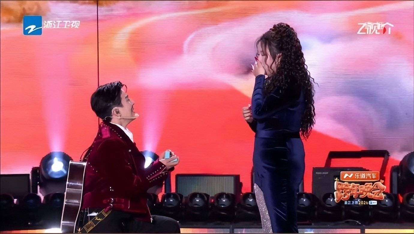当零点的钟声响起时,明星夫妻们的亲密互动却抢了风头,引发了一场关于舞台分寸和观众体验的激烈讨论。在2025-2026跨年演出季里,从李川在浙江卫视的跨年晚会向锤娜丽莎求婚、黄子韬与徐艺洋在舞台上的亲昵互动,到张杰在澳门跨年演唱会邀请谢娜作为表演嘉宾共同热舞,这些原本属于私人生活的情感表达,突然间进入了公共舞台。观众们的遥控器和鼠标瞬间成了战场。一些人拿着手机尖叫甜到掉牙,而另一些人则愤怒地对着屏幕喊退票。这场跨年晚会中情感泛滥的局面,到底是让人感到温暖还是令人烦躁?