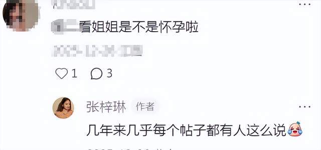 而对于在哈尔滨逛吃逛吃的张梓琳,外加她日渐圆润的脸蛋,有网友就猜她是不是怀孕了。对此,张梓琳无奈表示:“几年来几乎每个帖子都有人这么说”,算是否认了怀三胎传闻。