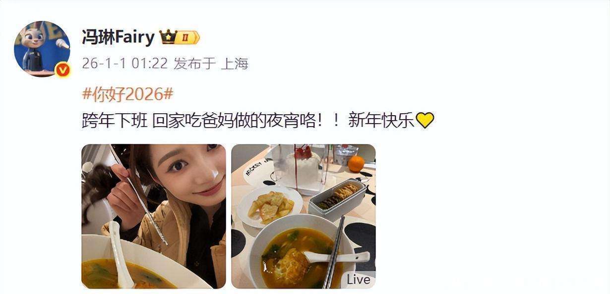 刚刚主持完《梦圆东方2026东方卫视跨年盛典》后,女主播冯琳在凌晨回家,享受了一顿妈妈做的热腾腾的荷包蛋。