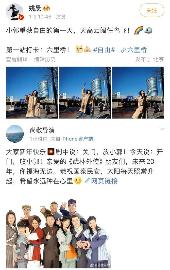 姚晨直接用郭芙蓉的语气发了条文,上来就喊 “天高云阔任鸟飞!第一站打卡:六里桥!”