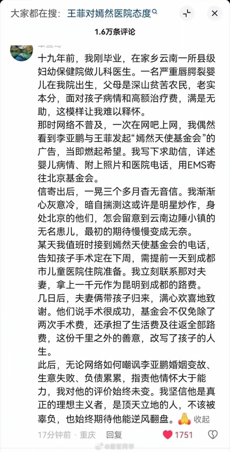 03、“笨拙的善良”,被她一语道破嫣然天使医院因拖欠2600万租金被判强制腾退,李亚鹏一条30秒求助视频引爆全网。