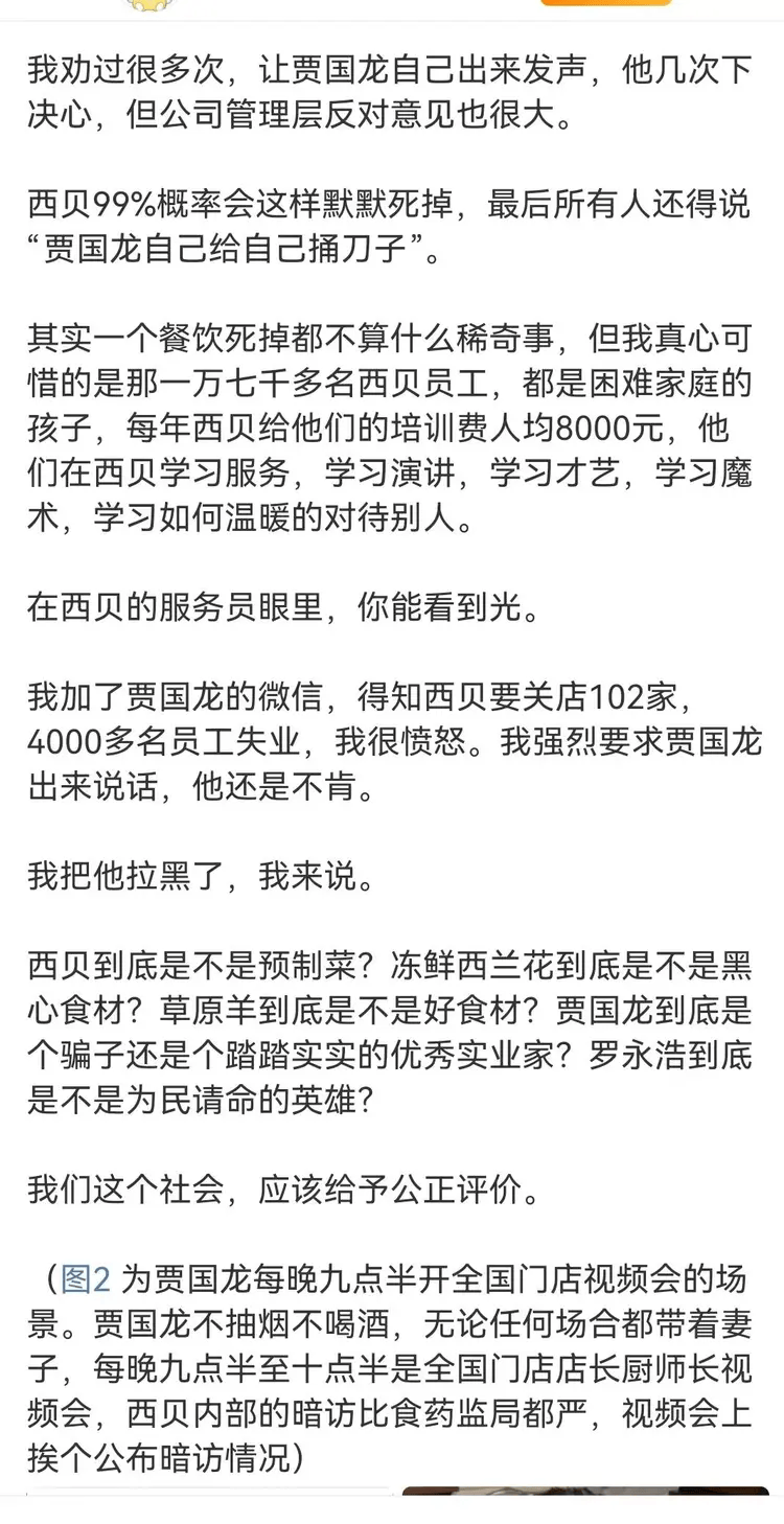 西贝这步棋臭到家!被封大V当军师,硬逼贾国龙学罗永浩?