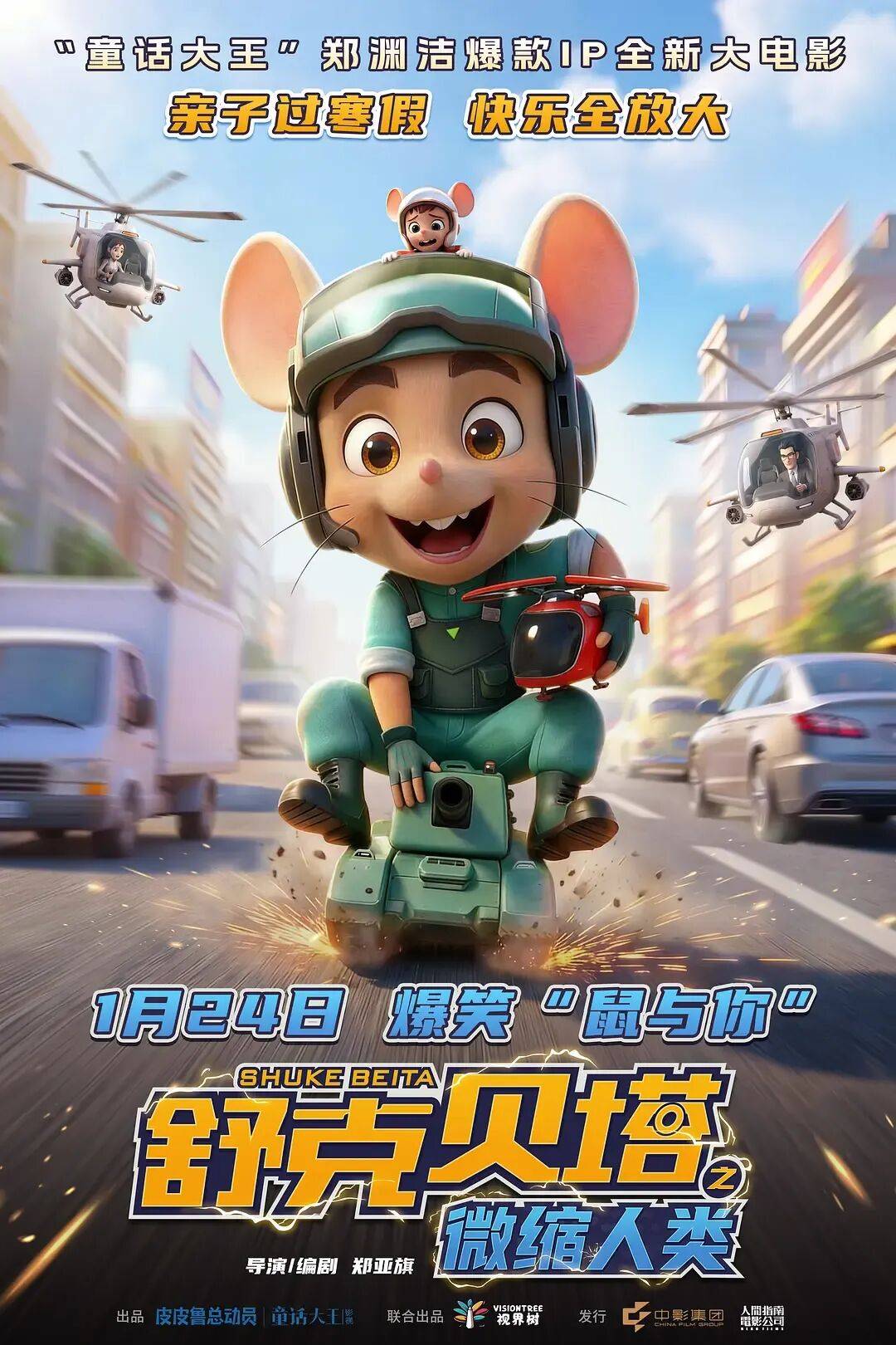 和2023年末上映的《舒克贝塔:五角飞碟》一样,此次的《舒克贝塔之微缩人类》也是郑渊洁的“家族班底”打造。尽管新的动画角色形象已和80后记忆中大相径庭,但近年来,《舒克贝塔》新制作的动画剧集吸引了部分新一代的儿童粉丝,前作斩获6607万票房,这部的市场表现也不至于太差。