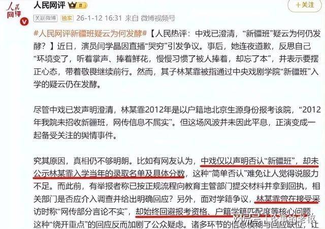 三天没吃燕窝这句话一出口,直播间的弹幕瞬间炸开,像烟花一样瞬间四散——不是羡慕,而是愤怒。年收入几十万还喊着自己穷,普通人连房租都快交不上了,谁有时间在意你碗里少了一口燕窝?闫学晶估计也没想到,一句随口的抱怨会把她那朴实二人转皇后的形象一下子撕得粉碎。更让人吃惊的是,她接下来居然补了一刀:当时给娃报了新疆班,分数低。话音刚落,屏幕那头的家长们都炸了:原来高考还能这样玩?七天后,中戏发出声明,表示2012年根本没有办过所谓的新疆班,孩子的户口是正正经经的北京户口。可网友们并不买账——你自己亲口说的新疆班,现在校方帮你擦屁股,信谁?这一句话,无疑把社会对教育公平最敏感的神经狠狠地掐了一下,顿时引起了阵阵愤慨。