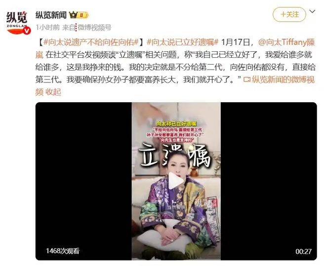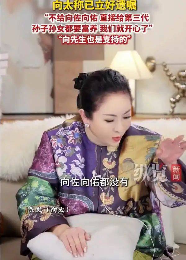 1月17日,向太陈岚在社交平台上传了一段视频,谈及自己已经立好遗嘱的事情。她语气淡然,却一语惊人:我自己已经立好了,我爱给谁多就给谁多,这是我挣来的钱。不分给第二代,向佐向佑都没有,直接给第三代。要确保孙女孙子富养长大,我们就开心了。视频发布后,评论区立刻炸开了锅。有人仔细算了一下,向家公开的资产已经包含了中国星影业版权库、上海外滩的写字楼、苏富比拍卖回来的2.8亿粉钻,还有离岸信托中的股票和牌照,总盘子保守估计至少300亿。这一波操作,简直是直接给向佐和向佑颁发了遗产绝缘体证书,连港岛的豪门都被震得目瞪口呆。