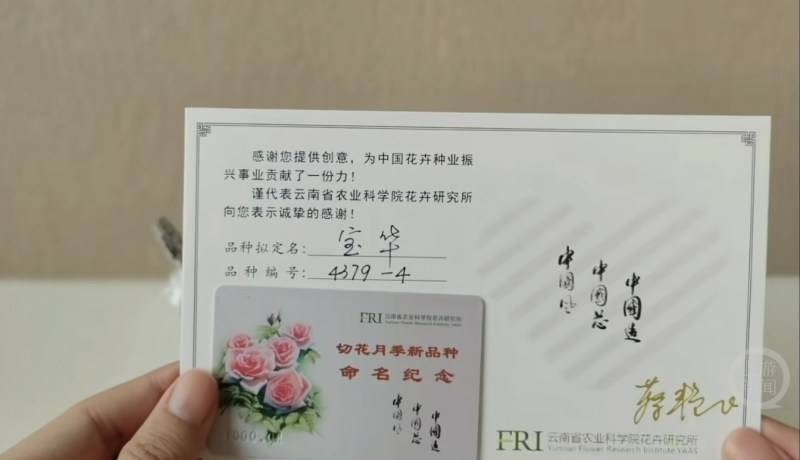 “‘刘宝华月季’,因为我二舅叫刘宝华。”去年12月,山东的康先生(网名:有之)在云南省农科院为新品种月季4379-4征名活动中留下了一句调侃的话,没想到这个建议被网友投到了“榜一”,最终这个新品种月季被命名为“宝华月季”。