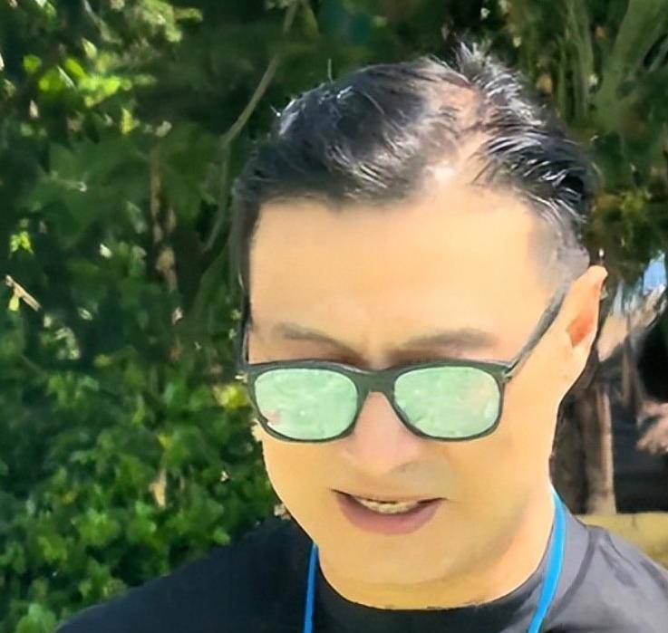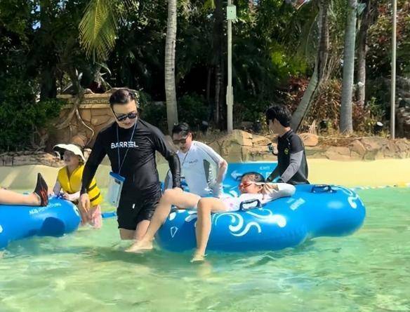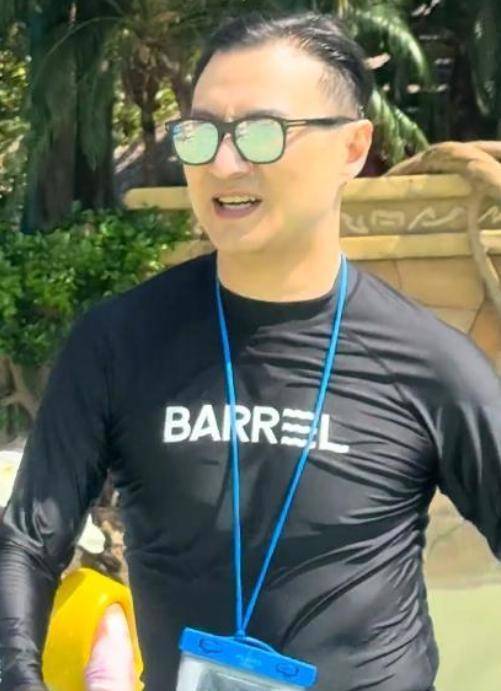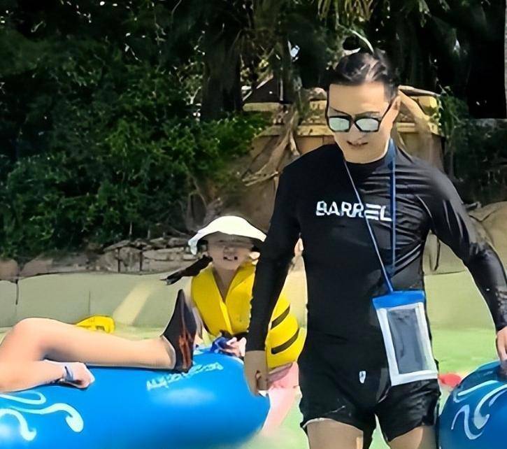 年过五旬的他,现身三亚,陪着孩子嬉水玩耍。