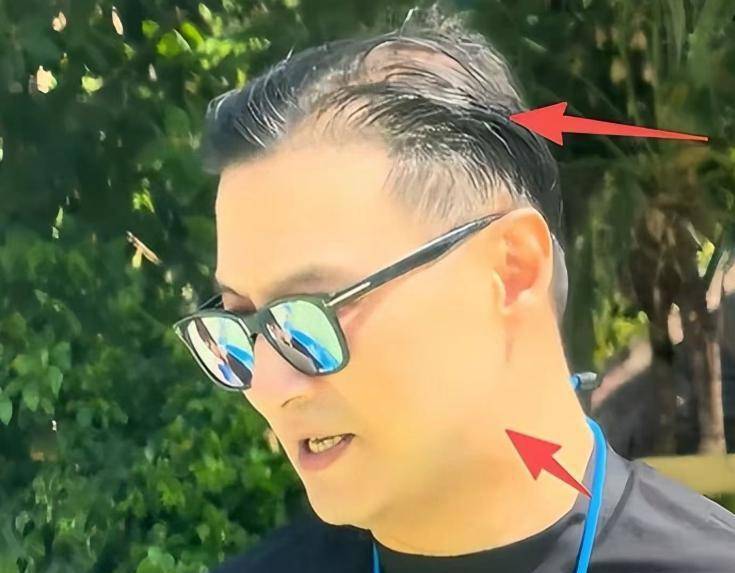 更抢眼的还是他那头发,发际线拉得老高,顶上还隐隐秃了块儿,远远望去,头皮都暴露无遗。