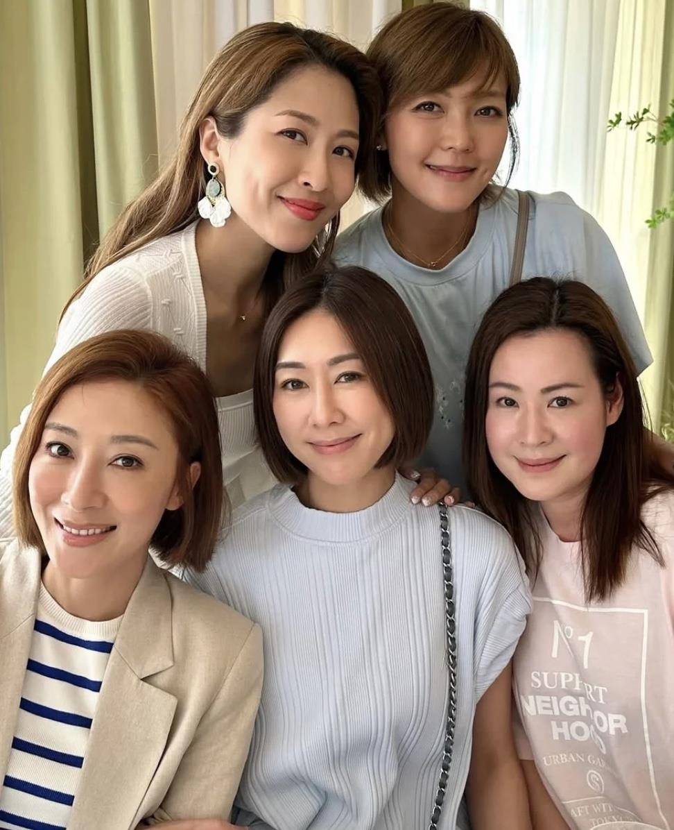 更难得的是,马国明的前女友胡定欣也在合影中站在一旁,她剪了个利落的短发,穿得挺随意的,整体状态看来相当不错。