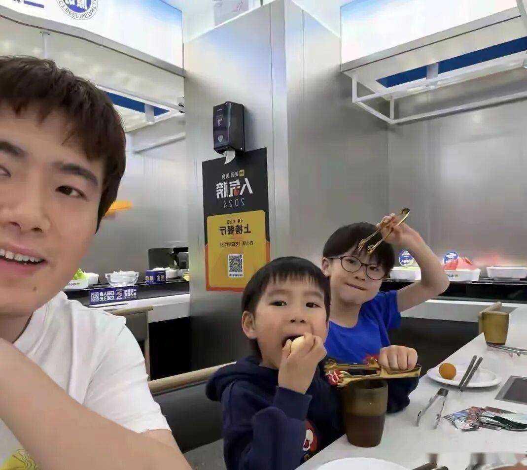 他会趁着训练间隙,耐心教大儿子打乒乓球,手把手纠正握拍和击球姿势;也会抽空带着两个儿子去游乐场撒欢,陪着他们玩滑梯、坐旋转木马,记录下孩子们的欢乐瞬间。
