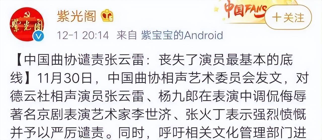 张云雷被中国曲协点名批评