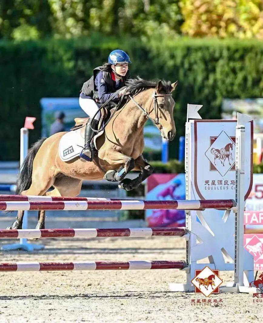 照片中,诺一身穿深蓝色骑手服,戴着专业头盔,眼神专注而坚定,骑在马背上的他在障碍前腾空而起,动作利落帅气,真的好酷。在马术考级大赛中,诺一还拿了亚军,看来实力真的很强呀。