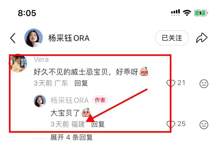 杨采钰的确在婆家过年,准确说也是在自己家过年,IP地址显示在福建。