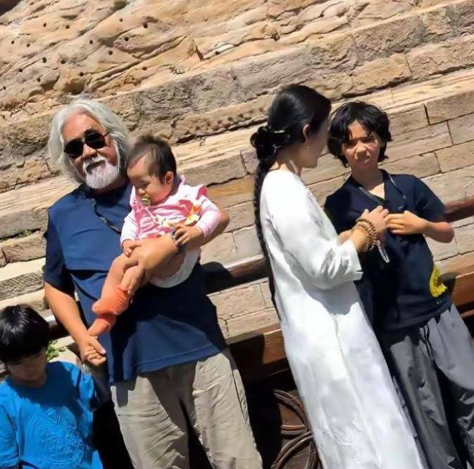 最近他们一家六口一起出去玩,从画面里能看到,张纪中戴着墨镜,叉着腰站那儿,挺有点大老板的架势。