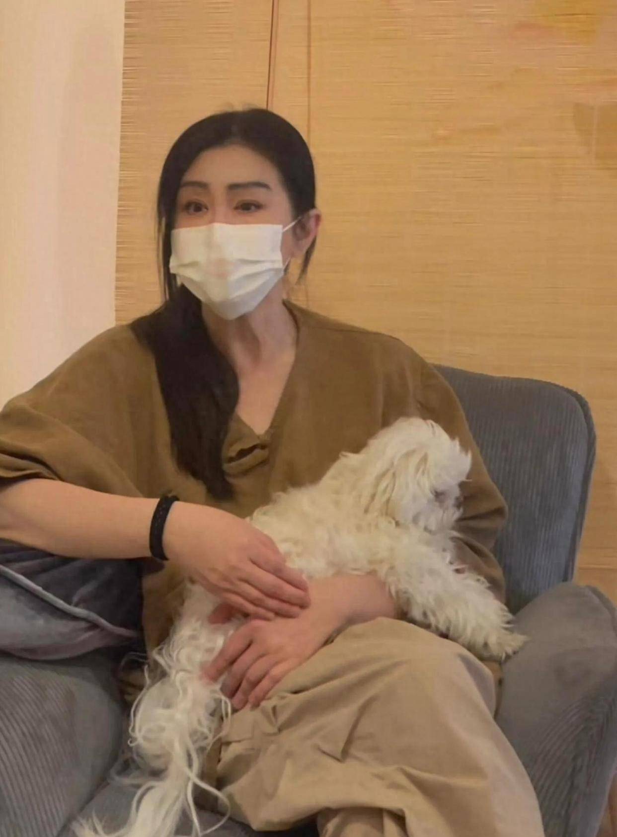 有人一边玩着狗狗,一边和朋友聊着天,王祖贤就这么悠闲地待着。