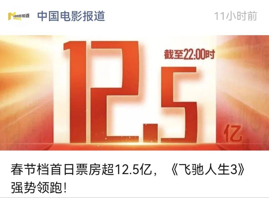 12.5亿的大盘,《飞驰人生3》自己一部影片就贡献了半壁江山,其余影片则是被打的七零八落,倒挂了一大批,连张艺谋的全明星阵容大片都没能有半点还手之力,是我完全没想到的。