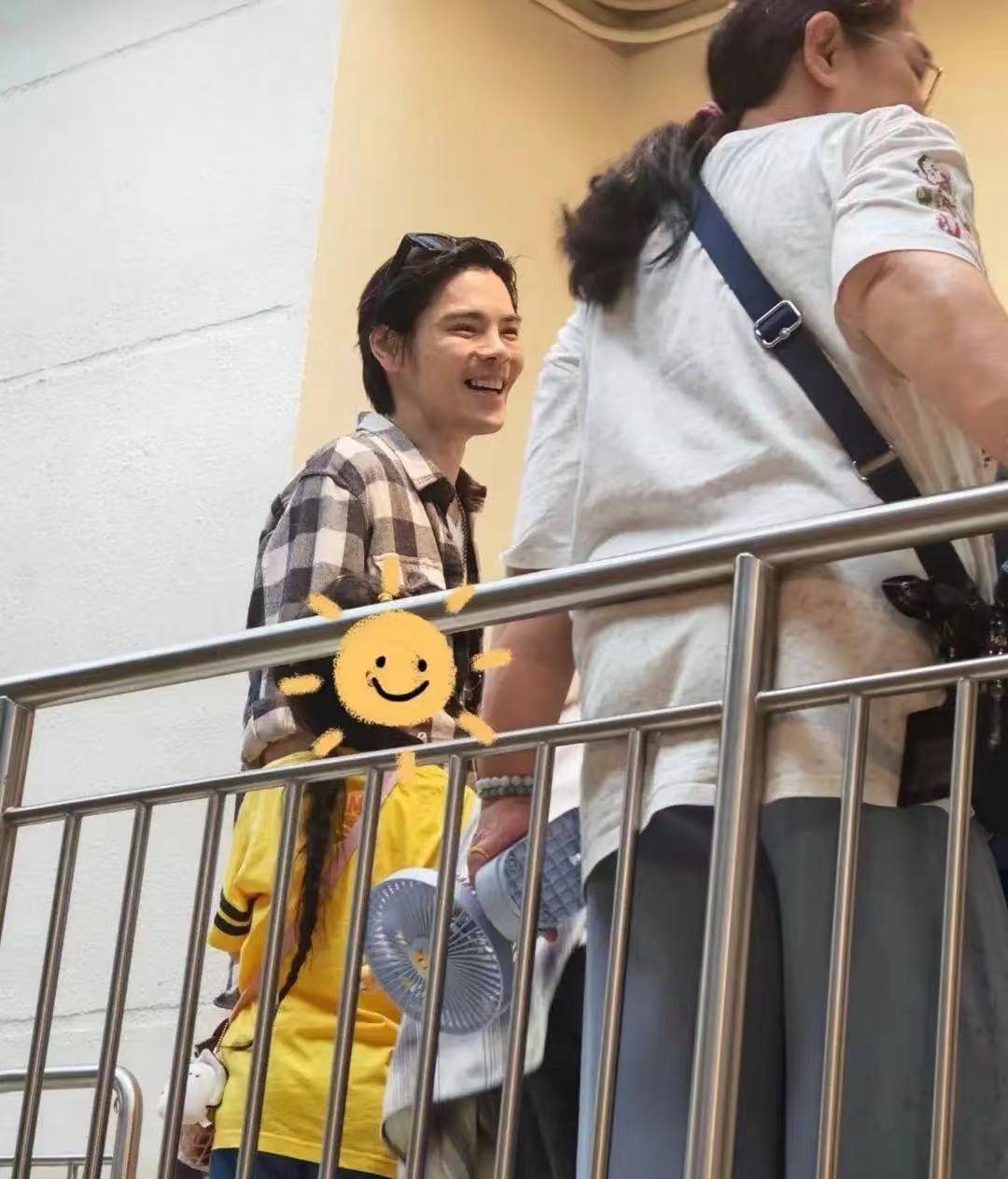 全家在商场自由行走,挤电梯、排队买冰淇淋,毫无明星架子;