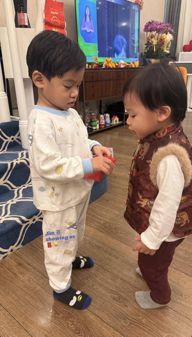 曾文豪和他的家人也一同现身,虽然他们的表现颇为低调。曾文豪抱着儿子,身旁是比他小25岁的二婚妻子李美慧。每次合照时,李美慧总是站在边缘位置,虽名义上是家主,但她始终保持低调。曾文豪抱着儿子,显得格外珍爱,这一幕仿佛让人误以为他抱的是孙子。事实上,曾文豪的小儿子和他的外孙年纪相仿,同年出生,两人是舅甥关系,却总是玩在一起,关系十分亲密。曾文豪的女儿还晒出了抱着儿子、搂着弟弟的合照,体现了这段关系的微妙与亲近。