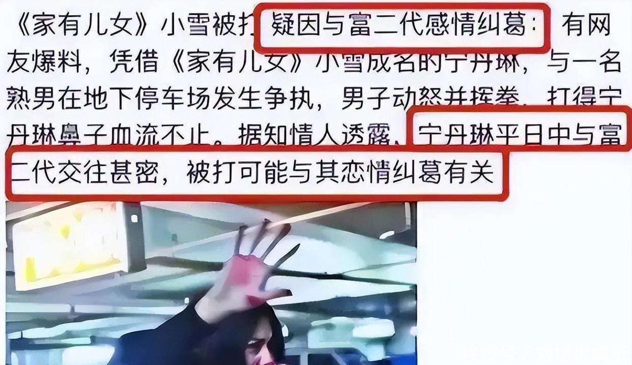 然而,更不幸的是,宁丹琳的事情并没有就此结束。有一次,在地下停车场,她遇到了一位喝得醉醺醺的男人。这个男人认出了她,突然拉住了她,不放手,宁丹琳拼命反抗,结果被打得满脸是血,鼻子也流血了。场面十分尴尬,而且被好心人拍下来上传到网上。没想到,这件事迅速在网络上发酵,大家的猜测也越来越离谱。有的人说她和富二代男友吵架时被打了,也有人恶意揣测,说她的鼻子是整容做的,这次是鼻子被打坏了,流了血。真是冤枉,宁丹琳一下子成了众矢之的。她很想解释,但没有人愿意听她的解释。她身上的靠爸的标签始终没有去掉,又被人指责私生活混乱,还有一些无中生有的谣言,比如说她整容了,鼻子因此变歪了。这一切,都是她无端承受的恶意。