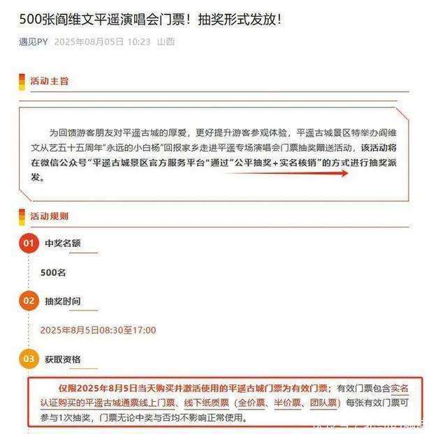 任何一个懂得文旅经济的人都知道,在如今这个眼球经济激烈竞争的时代,地方景区为了提高人流量和市场份额,往往会想尽办法。原本免费的古城突然开始搞门票抽奖,这种杀鸡取卵的营销手段,引起了公众的强烈反感。但在这些愤怒的声音背后,有一个被掩盖的核心真相:阎维文是被动入局的。在演艺圈的商业链条中,艺人往往是话语权最小的乙方,他们只负责按时登台唱歌,而至于票务如何操控、抽奖机制如何设计,这些通常是由主办方决定,艺人根本没有太多选择。