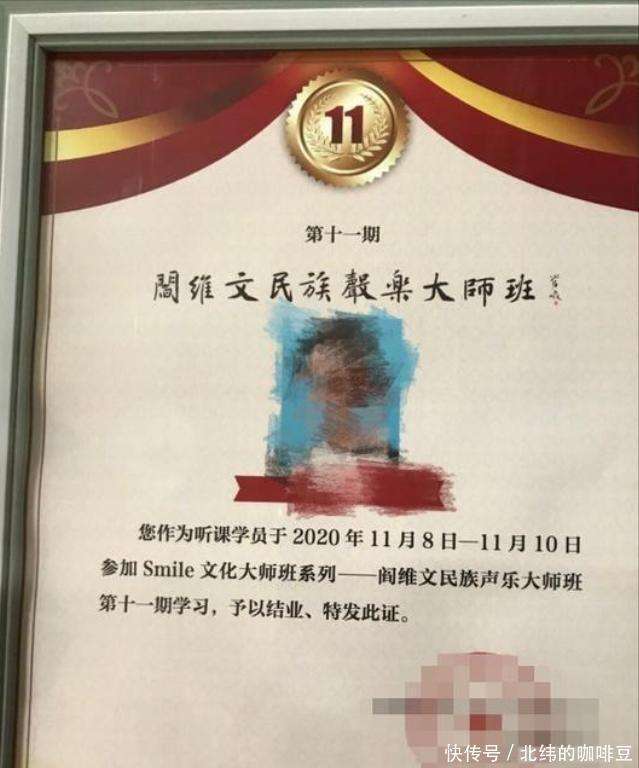 一场排练中,网友发现阎维文穿的这件上衣居然要七千多块。于是,许多人纷纷开始指责他奢侈,但也有一些人认为,和那些身价动辄上百万的『明星』️相比,这件卫衣根本不算什么。就在大家讨论纷纷之时,又有一个网友晒出了参加阎维文声乐大师班的结业证书,证书上的日期显示课程只有三天,分别是11月8号到10号,短短两天就结业,简直令人难以置信。