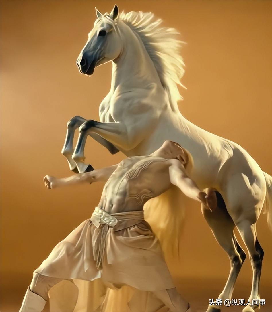 节目中,舞者们化身汗血马、白马、黑马等不同造型,面部的阴影拉长了中庭,肌肉线条显得凌厉而张扬,这场舞蹈得到了官方的高度评价,甚至被赞为东方仿生美学的又一次封神。