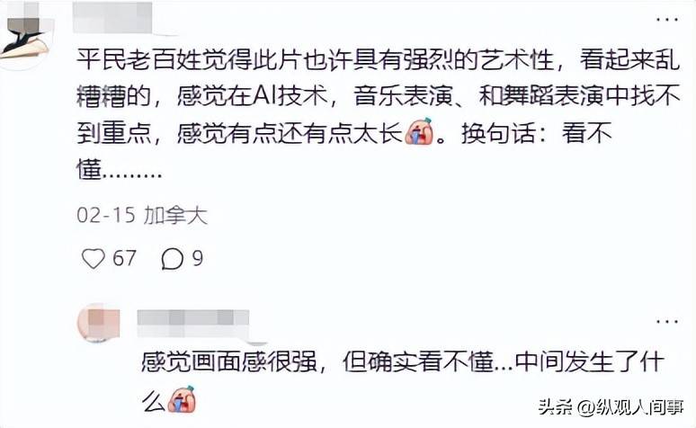 更有网友直言,节目中的AI虚拟场景过于浓重,骏马特效显得僵硬不自然,完全失去了她过去作品的灵动感,好好的东方美学,硬是拍成了《