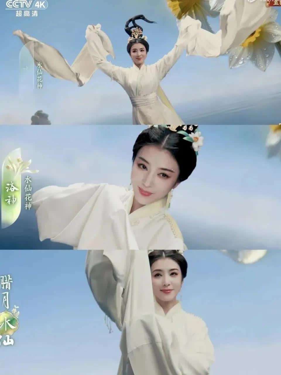 贺花神》里的水仙洛神,彻底出圈。她那段越剧腔调的念白翩若惊鸿,婉若游龙让人陶醉,水袖功夫更是让人惊叹不已,甚至有网友戏称她为电风扇级臂力。她在春节期间连续登上了六台春晚,从山东春晚的《